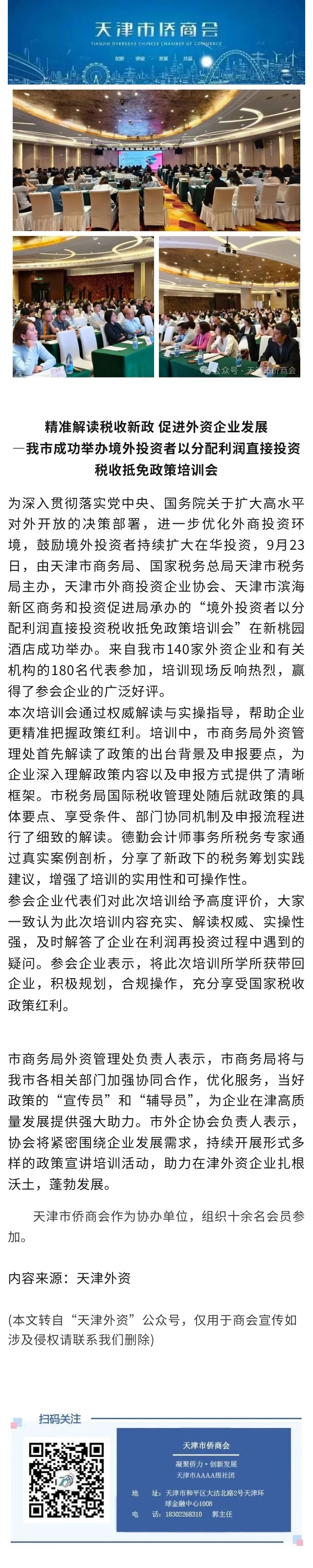 我市成功举办境外投资者以分配利润直接投资税收抵免政策培训会,天津市侨商会组织参加