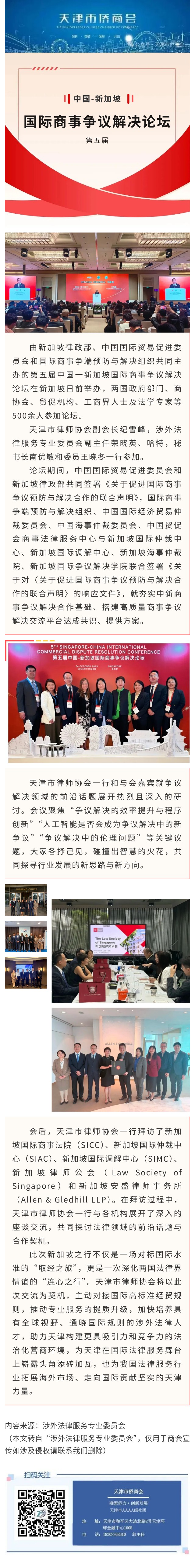 会企时讯 | 天津市侨商会理事纪雪峰参加第五届中国一新加坡国际商事争议解决论坛并进行调研交流