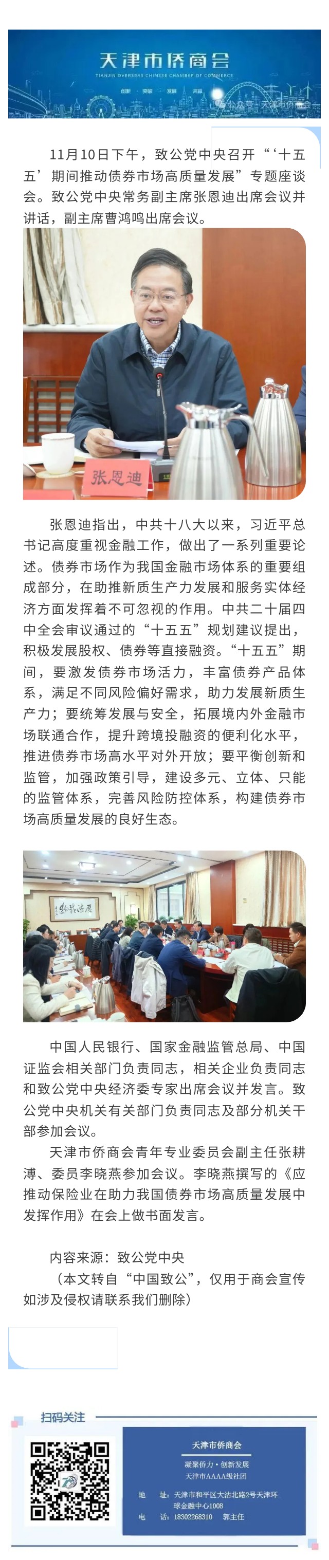 青业会动态|天津市侨商会青年专业委员会张耕溥、李晓燕参加致公党中央专题座谈会