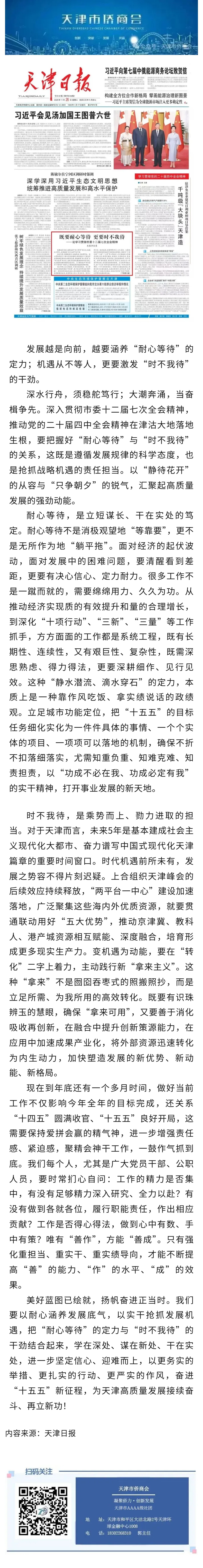 天津日报头版刊发评论员文章:既要耐心等待 更要时不我待