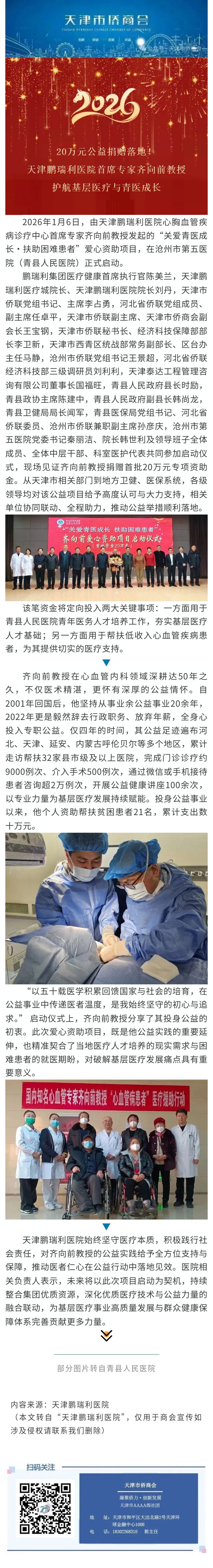 会企时讯 | 20万元公益捐款落地!天津市侨商会会员、天津鹏瑞利医院首席专家齐向前教授护航基层医疗与青医成长