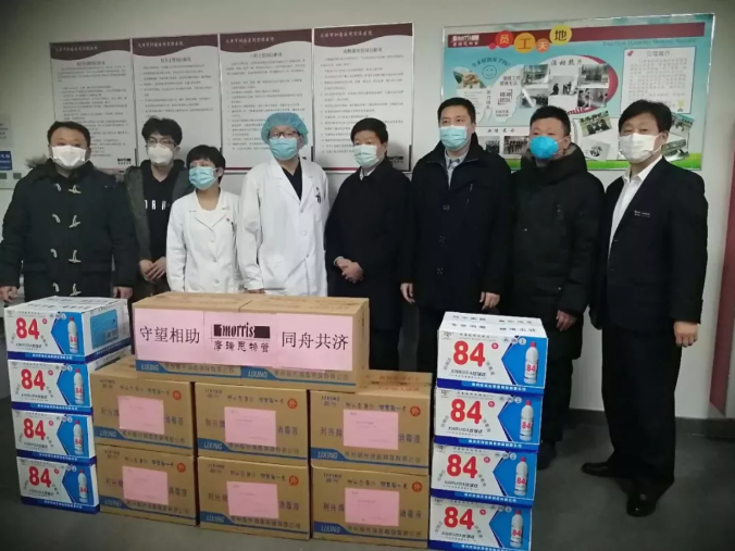 2月中旬以来,摩瑞思房地产经营服务有限公司分别中医一附院,医大二附属,肿瘤医院,医大眼科医院和太山肿瘤医院进行第二次捐赠,消毒物资价值共计8万余元。