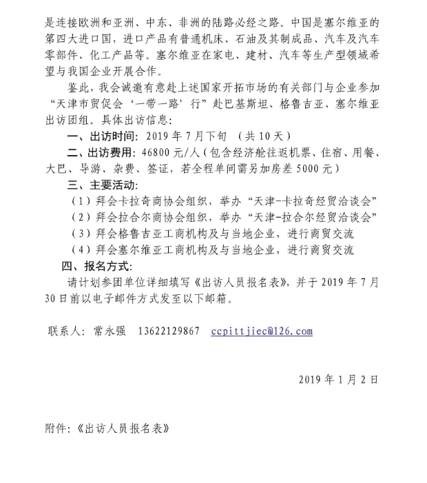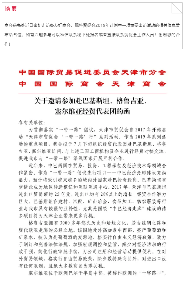 关于邀请参加赴巴基斯坦、格鲁吉亚、塞尔维亚经贸代表团的邀请函